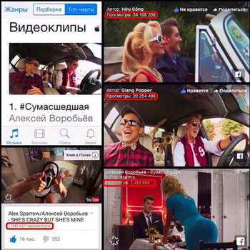 Клип Алексея Воробьева на песню «Сумасшедшая» ставит рекорды просмотров. Как и сама песня, взлетевшая в первые же сутки на вершину российского чарта iTunes, клип на нее, попав в фейсбук в Юго-Восточной Азии, всего за три дня собрал более пятидесяти миллионов просмотров. Причем в Первом музыкальном издательстве, занимающимся продвижением артиста, агентство InterMedia уверили, что просмотры продолжают расти, охватывая всё новые и новые страны – от Индии и Таиланда до Латинской Америки.