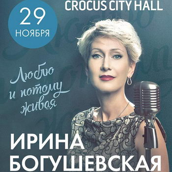 Концерт Ирины Богушевской состоится 29 ноября 2015 года в Crocus City Hall. Певица представит программу «Люблю и потому живая», включающую песни с разных альбомов.