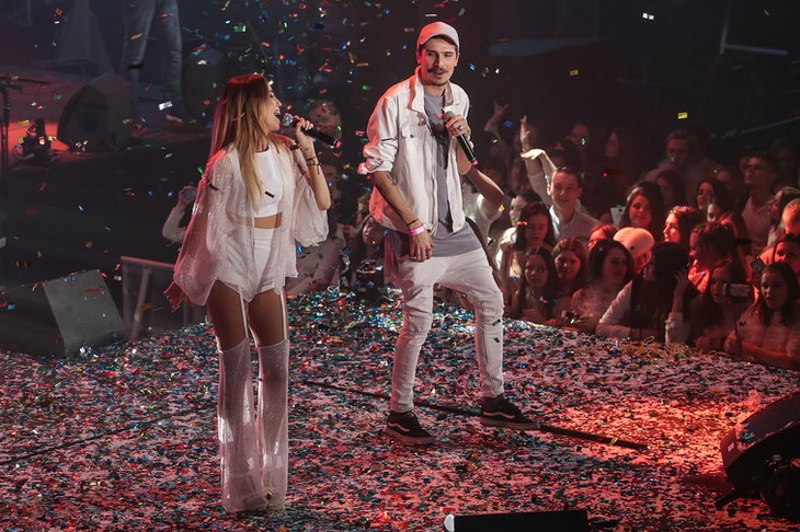 – Мы собрали десять самых популярных молодых исполнителей, с которыми записали новогодний трек. Сейчас он успешно расходится в интернете, в соцсетях, набирает популярность в iTunes. Клип на эту песню будет идти у нас в эфире в декабре и в праздничные дни. Исполнением этого гимна на сцене мы начинаем обратный отсчет до Нового года! – прокомментировал выступление генеральный продюсер телеканала «Музыка Первого» Борис Хлуднев.