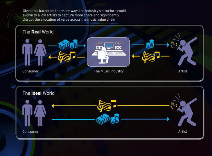 По мнению аналитиков Citygroup, изменить ситуацию может консолидация различных участников музыкального бизнеса – промоутеров, стримингов, лейблов и т.д.: слияние или совмещение некоторых функций для высвобождения средств на оплату труда музыкантов. Но пока сложно сказать, готовы ли они к таким «лишениям». В идеале, как заявляют эксперты, посредников между слушателями и музыкантами вообще не должно быть, но это осуществить пока еще не реально.