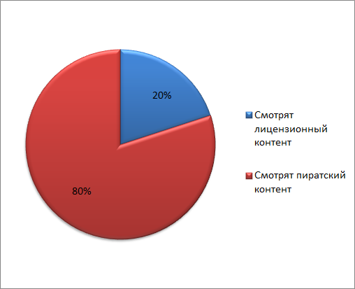 Соотношение количества потребителей лицензионного и пиратского контента