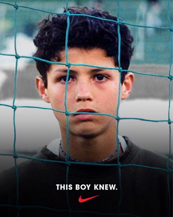 Футболист мадридского «Реала» и сборной Португалии Криштиану Роналду выложил в твиттере свое детское фото в джемпере с эмблемой компании Nike, с которой спортсмен подписал пожизненный контракт в 2016 году. Снимок сопровождается подписью: «Этот мальчик знал».