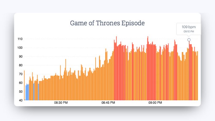 Это не первое подобное исследование, проводимое Cardiogram: команда отслеживает пульс поклонников «Игры престолов» уже несколько лет, и в 2015 году было установлено, что появление на экране белых ходоков способно резко участить пульс зрителей.