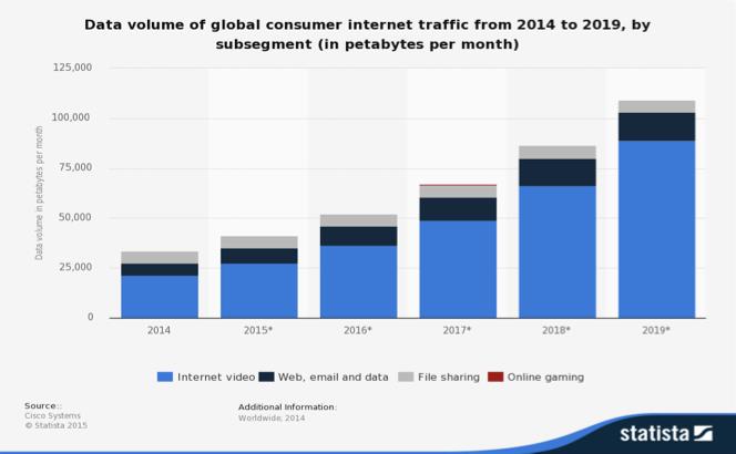 Евгений Сафронов в очередной раз обратил внимание собравшихся на то, что многомиллиардная IT-индустрия, практически подчинившая в последние годы мировую экономику, на самом деле представляет собой в первую очередь систему доставки творческого контента потребителю, и в значительно меньшей степени, чем принято считать, используется для общения, обучения, науки и др. Для доказательства этого тезиса докладчик привел детальную аналитику и прогнозы компании Cisco на 2014–2019 гг.