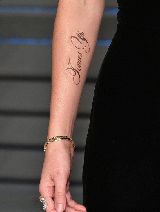 Эмма Уотсон прибыла на «послеоскаровскую» вечеринку Vanity Fair 3 марта 2018 года в открытом платье от Ralph Lauren, которое демонстрировало миру ее новую татуировку. Рисунок украшает правую руку 27-летней актрисы с внутренней стороны от запястья до локтевого сгиба и должен был представлять собой лозунг нового популярного феминистско-голливудского движения против харассмента Time's Up. К сожалению для актрисы, художник, делавший надпись на ее руке, оказался не слишком грамотным и забыл «набить» апостроф. Так что надпись «Times Up» вызвала бурную реакцию в соцсетях: интернет-пользователи буквально «затроллили» звезду «Гарри Поттера» в своих многочисленных постах.