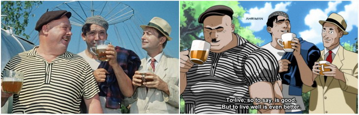 Российский художник Дмитрий «Ahriman» Грозов создал серию картинок на основе кадров из известных советских и зарубежных фильмов, нарисованные в японском стиле мультипликации — аниме. В рамках проекта Animotion опубликовал уже несколько десятков изображений по мотивам своих любимых фильмов.