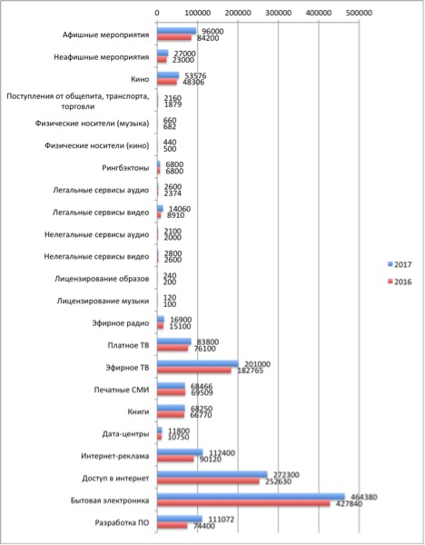 Среди творческих индустрий (по определению InterMedia, к ним относятся сегменты экономики, для которых определяющим фактором потребления является доступ к результатам творческой деятельности) подавляющее преимущество - у электронных направлений. Печатное распространение с трудом удерживает долю в 8%, физические носители аудиовизуальных произведений уходят в прошлое и уже не вернутся: теперь бурно растущая аудитория приходит за литературой, музыкой и кино в сети - в первую очередь именно для доставки произведений используются гаджеты, по старой привычке называемые телефонами и компьютерами.