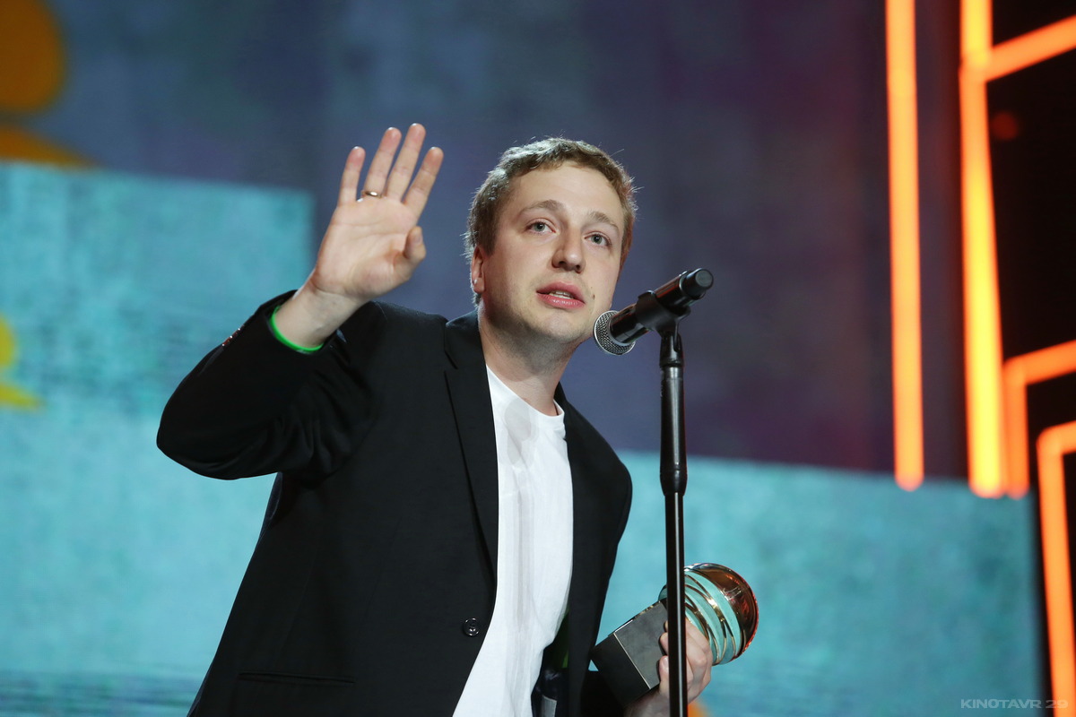 Первой вручили награду за лучший короткометражный фильм. Для этого на сцену поднялась председатель жюри конкурса короткого метра продюсер Юлия Мешкинене. Приз из ее рук достался режиссеру Игорю Поплаухину, снявшему «Календарь» (напомним, что в тот же день короткометражка удостоилась награды журнала «Искусство кино»).