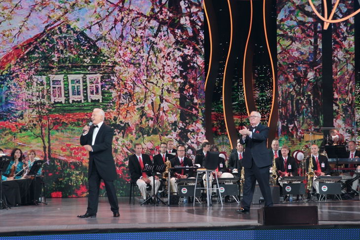 Однако начать Александр решил с премьеры, самолично исполнив песню «Домик окнами в сад» на стихи Анатолия Поперечного. Заглавную песню концерта «В горнице моей светло» задушевно исполнила Роза Рымбаева. Певица призналась: