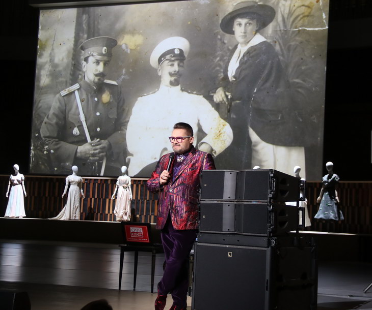 Александр Васильев также рассказал о костюмах, в которых были наряжены манекены, украшавшие сцену. По словам Васильева, элегантное зеленое платье передала ему из-за границы певица Аида Ведищева. Еще один наряд оказался репликой любимого платья Людмилы Гурченко. Посвящением этой великой актрисе стало выступление Нонны Гришаевой.