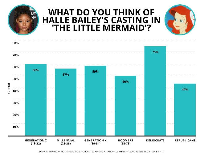 По материалам Disney's Choice to Cast Halle Bailey in 'Little Mermaid' Is Mostly Well-Received, Poll Finds