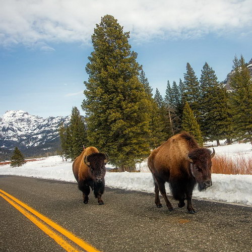 - В обязанности помощника шерифа в Западном Йеллоустоне входит «выпас» бизонов, которых надо прогонять с шоссе, чтобы никто не пострадал, - сообщается в официальном фейсбуке, где размещена соответствующая фотография. – Приходится включать свет фар и сирену, чтобы вынудить животных уйти.