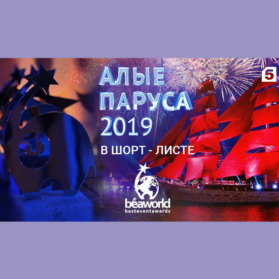 Проект Пятого канала «Алые паруса-2019» вошел в шорт-лист конкурса Best Event Awards World. Заявки рассматривались в 23 категориях: «Собственный формат», «Устойчивые инновации», «Некоммерческое событие», «Media & PR Event», «Роуд-шоу», «Культурное событие», «Спортивное мероприятие», «Публичное мероприятие», «Малобюджетное мероприятие», «Запуск продукта/услуги» и др. «Алые паруса-2019» вышли в финал в номинации «Музыкальное событие года».