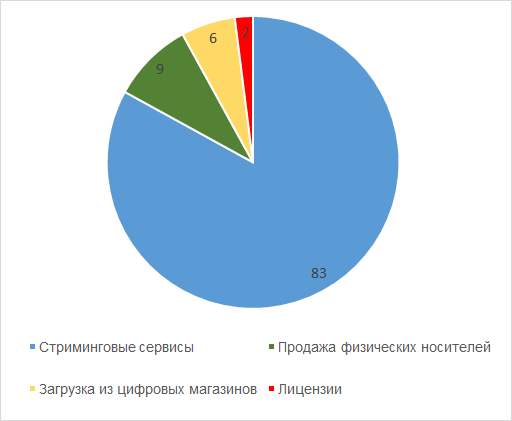 Утратило популярность также скачивание музыки на устройство пользователей – на загрузки пришлось только 6% от всех доходов. В 2019 году этот сегмент приносил доход в размере 822,7 млн долларов, но через год опустился на 18% – до 674,4 млн долларов.