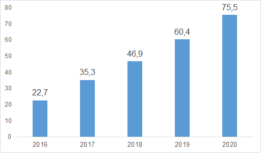 Так, общие доходы отрасли в США по итогам 2020 года выросли на 9,2% и составили 12,2 млрд долларов. Непосредственно доходы от стриминговых платформ за тот же период времени выросли на 13,4% и составили 10,1 млрд долларов (в 2019 г. – 8,9 млрд). Всего на этот сегмент пришлось 83% от всех доходов.