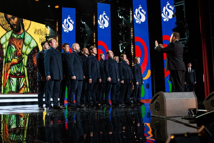 - Мне очень приятно приветствовать участников нашего фестиваля и всех, кто подключился к нашей трансляции, - сказал он. - У нас десятый фестиваль, юбилейный, и отрадно, что в нем принимают участие представители 57 регионов, 6 государств (Австрия, Испания, Германия, Словакия, Узбекистан, Румыния), а также Луганской Народной Республики. Этот фестиваль мы посвящаем 800-летию со дня рождения благоверного князя Александра Невского. Я хотел бы поблагодарить руководителей регионов и коллективов, которые откликнулись на нашу просьбу и приняли участие в нашем фестивале.