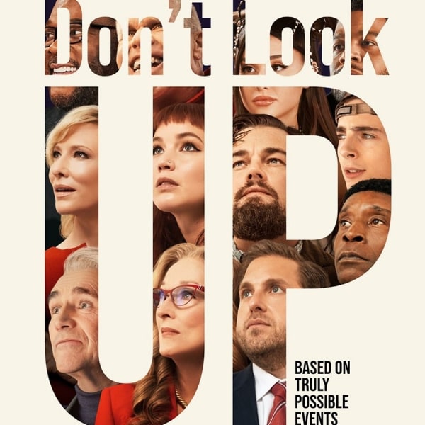 Сатирическая комедия «Не смотрите наверх» вышла на стриминговом сервисе Netflix24 декабря 2021 года. Режиссёр: Адам МакКей. В ролях: Леонардо ДиКаприо, Дженнифер Лоуренс, Мэрил Стрип, Джона Хилл, Кейт Бланшетт, Марк Райлэнс, Тимоти Шаламе, Рон Перлман, Ариана Гранде, Скотт Мескади и другие.