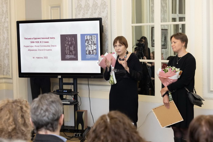 Председатель жюри, художественный руководитель театра «Сатирикон» Константин Райкин вручил диплом лауреата «Театрального романа» за книгу «Письма в Художественный театр. 1898-1928. В 2 томах» редакторам издания Инне Соловьевой, Ольге Абрамовой и Ольге Егошиной.