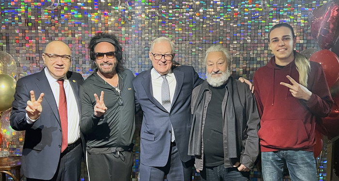 Посол Армении в России Гурген Арсенян, бас-гитарист группы "Парк Горького" Марко Мендоса, заместитель министра иностранных дел РФ Сергей Рябков, продюсер Стас Намин, гитарист группы Парк Горького Тим Григорович в "Ритм-Блюз кафе"