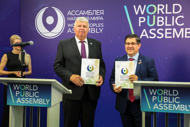 Первая Всемирная общественная ассамблея "Новый мир осознанного единства" состоялась 20-21 сентября в Центре международной торговли в Москве. Форум был приурочен к Международному дню мира и объединил свыше 4 тыс. участников из более чем 150 стран. Среди почетных гостей были заместитель генсека ШОС Пяо Янфань, замгенсека СНГ Ильхом Нематов, государственный секретарь Союзного государства Сергей Глазьев, зампред Совета Федерации Константин Косачев, представители Святого Престола, мэры иностранных городов и предприниматели из Африки, Азии и Латинской Америки.